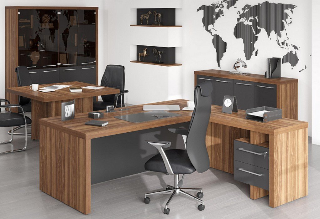 Кабинет, сочетающий в себе современные минималистичные формы и солидность традиционной классической мебели. Столешница и опоры толщиной 54 мм. Массивные, основательные. Декор - классический орех с яркой текстурой - сама респектабельность. А прямые, рубленые формы позволяют использовать ZENN и в традиционных кабинетах, и в современных открытых офисах. И там, и там он будет великолепен.